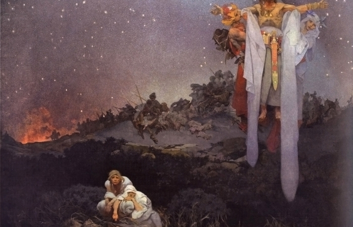 В 1910 году Альфонс Муха вернулся в Австро-Венгрию, чтобы окончательно поселиться в Праге. Он решил сосредоточиться на проектах, которые отражали бы его национальную идентичность и привязанность к славянской культуре, и одним из наиболее масштабных проектов Мухи в этот период стала работа над серией картин под общим названием «Славянская эпопея», на которую у художника ушло 18 лет.