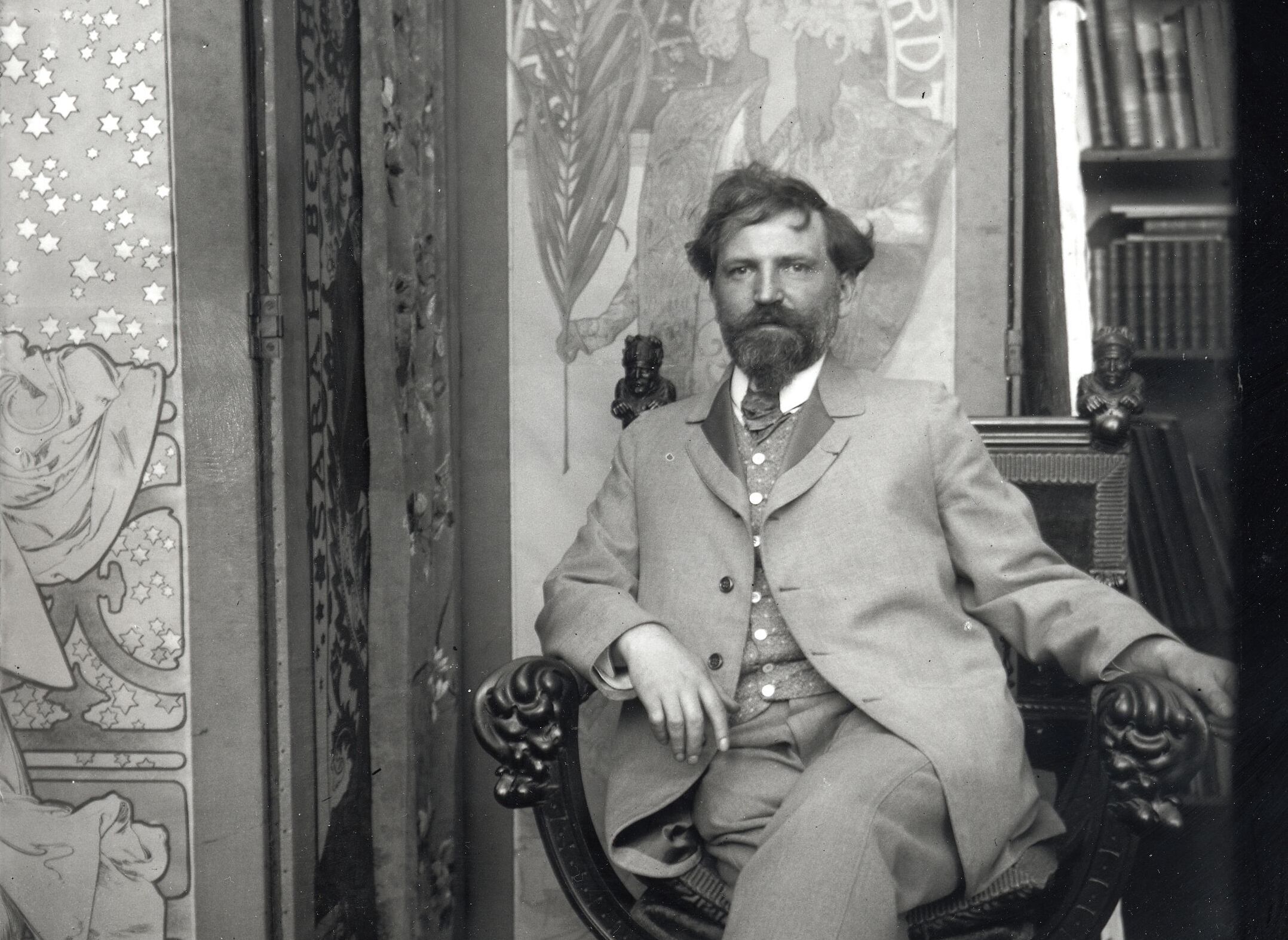 К последним работам Мухи парижского периода относятся картина и набор фресок, созданные им для Всемирной выставки, которая проходила в столице Франции в 1900 году. Главенствующим стилем на выставке был ар-нуво. Картиной и фресками, содержащими элементы славянской культуры и фольклора, художник украсил один из павильонов. В 1901 году, после более чем десятилетнего пребывания во Франции, живописец вернулся в Чехословакию.