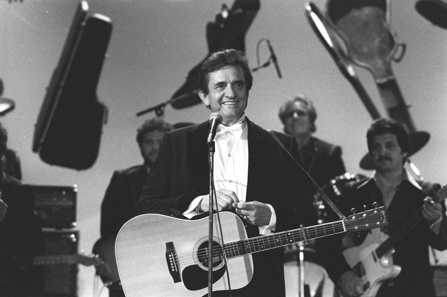 Джонни Кэш — американский певец, композитор и одна из ключевых фигур в музыке кантри XX века, чьё влияние вышло далеко за пределы жанра. «Человек в чёрном», как его называли поклонники, стал символом бунтарства и сострадания, соединив в своём творчестве госпел, рок-н-ролл, рокабилли и блюз. Его глубокий баритон и честные тексты о жизни простых людей принесли ему более 50 миллионов проданных альбомов и 13 премий Grammy.