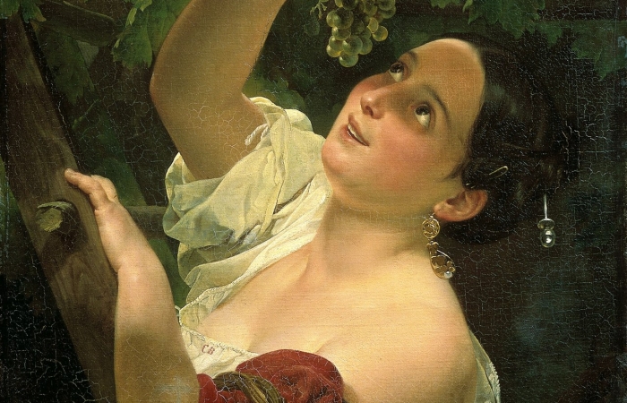 Брюллов получил заказ от императорского Общества поощрения художников. Он копировал фреску Рафаэля, находящуюся в Ватиканском дворце. Также живописец начал писать портреты, в том числе парадные. В это же время он увлёкся жанровой живописью. Карл Павлович создавал работы на исторические и религиозные темы, но черпал вдохновение и в более приземлённых сюжетах.