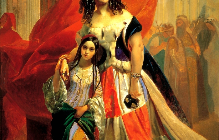 Карл Брюллов на протяжении большей части своей жизни состоял в отношениях с Юлией Самойловой. Она принадлежала к богатейшему графскому роду. Самойлова была замужем, но открыто вступала в связь с другими мужчинами. С художником она познакомилась в Риме ещё в молодости. Некоторое время они вместе путешествовали по Европе. В дальнейшем графиня много лет была покровительницей и музой Карла Павловича.