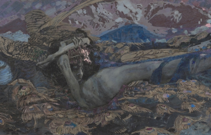 Михаил Врубель — русский живописец и скульптор. В молодости учился в Императорской Академии художеств, увлекался византийским искусством. Позднее переехал в Москву, где написал самые известные свои картины. В последние годы жизни художник страдал от тяжёлой душевной болезни, которая подрывала его силы. Незадолго до смерти он ослеп и перестал рисовать. В этот период Врубель постоянно находился в плену галлюцинаций.